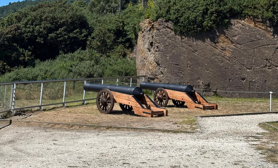 Como parte de esta renovación, se incorporaron dos réplicas de cañones orientadas hacia el sector norte del foso, concebidas como elementos de apoyo museográfico y realizado en Valdivia por el astillero Servinav. Durante décadas, la batería de cañones fue un espacio de cercanía y apropiación para generaciones de visitantes, quienes registraron su paso por el lugar a través de fotografías y recuerdos familiares. Sin embargo, debido a la erosión del terreno y a criterios de conservación, el acceso a esta área se encuentra restringido desde 2010.
